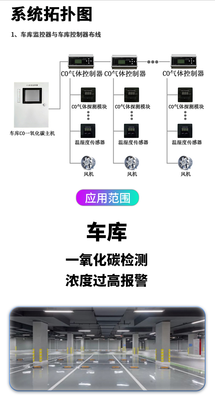 在地下停車場(chǎng)或者通風(fēng)環(huán)境較差的空間應(yīng)配有送排風(fēng)系統(tǒng),用新鮮空氣進(jìn)行置換。上海治聯(lián)智慧按照相關(guān)國(guó)家行業(yè)技術(shù)相關(guān)標(biāo)準(zhǔn)研發(fā)了空氣質(zhì)量監(jiān)控系統(tǒng)ZH-Q200ZJ配套上海治理智慧一氧化碳傳感器ZH-Q200CO,可對(duì)地下停車場(chǎng)一氧化碳濃度進(jìn)行24小時(shí)實(shí)時(shí)自動(dòng)巡檢,對(duì)一氧化碳濃度超過(guò)標(biāo)準(zhǔn)的區(qū)域給出報(bào)警提并聯(lián)動(dòng)開啟機(jī)械送風(fēng)系統(tǒng),控制一氧化碳濃度在安全范圍內(nèi)。保障人體健康以及生命安全。