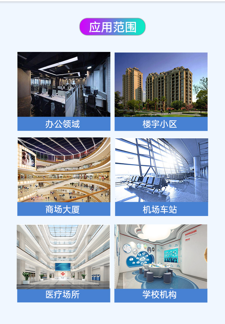主要適用于學校教室、智能家居、辦公樓、酒店大堂、房地產(chǎn)展廳、別墅、醫(yī)院、KTV會所、高端餐廳等環(huán)境